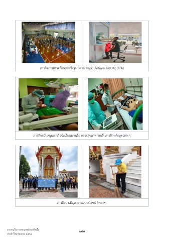 ภารกิจการตรวจคัดกรองเชิงรุก Swab Rapid Antigen Test Kit (ATK) ภารกิจสนับสนุนภารกิจนักเรียนนายเรือ ตรวจสุขภาพก่อนรับการฝึกหลักสูตรต่างๆ ภารกิจบ�าเพ็ญสาธารณประโยชน์ จิตอาสา รายงานกิจการสายแพทย์กองทัพเรือ 188 ประจ�าปีงบประมาณ ๒๕๖๔