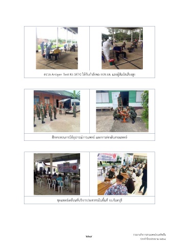 ตรวจ Antigen Test Kit (ATK) ให้กับก�าลังพล กปช.จต. และผู้สัมผัสเสี่ยงสูง ฝึกทบทวนการใช้อุปกรณ์การแพทย์ และการส่งกลับสายแพทย์ ชุดแพทย์เคลื่อนที่บริการประชาชนในพื้นที่ จว.จันทบุรี 227 รายงานกิจการสายแพทย์กองทัพเรือ ประจ�าปีงบประมาณ ๒๕๖๔