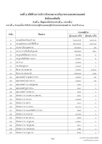 บทที่ ๕ สถิติด้านการบริการรักษาพยาบาลในภาพรวมของหน่วยแพทย์