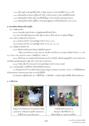 ๒) สนับสนุนการปฏิบัติงานของ สธ.ฯ ในพื้นที่ ได้แก่ การฉีดวัคซีน การเคลื่อนย้ายผู้ป่วยติดเชื้อ เป็นไปตามเป้าหมาย
