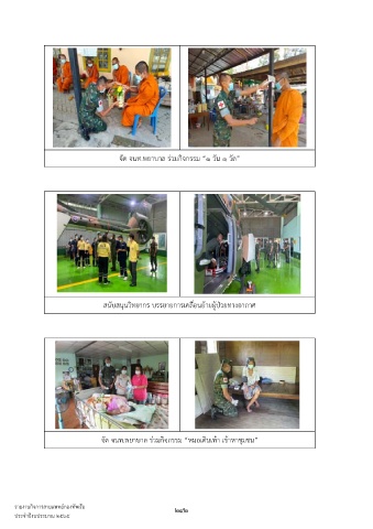 จัด จนท.พยาบาล ร่วมกิจกรรม “๑ วัน ๑ วัด” สนับสนุนวิทยากร บรรยายการเคลื่อนย้ายผู้ป่วยทางอากาศ จัด จนท.พยาบาล ร่วมกิจกรรม “หมอเดินเท้า เข้าหาชุมชน” รายงานกิจการสายแพทย์กองทัพเรือ 242 ประจ�าปีงบประมาณ ๒๕๖๕