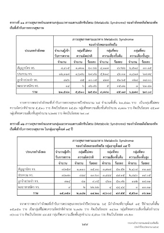 ตำรำงที่ ๑๒ ภำวะสุขภำพจ�ำแนกตำมกลุ่มแนวทำงเมตำบอลิกซินโดรม (Metabolic Syndrome) ของก�ำลังพลสังกัดกองทัพ