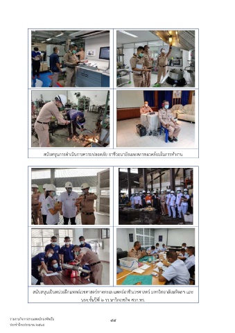 สนับสนุนการด�าเนินงานความปลอดภัย อาชีวอนามัยและสภาพแวดล้อมในการท�างาน สนับสนุนเป็นหน่วยฝึกแพทย์เวชศาสตร์ทางทะเล แพทย์อาชีวเวชศาสตร์ มหาวิทยาลัยมหิดลฯ และ นรจ.ชั้นปีที่ ๒ รร.นาวิกเวชกิจ ศวก.พร. รายงานกิจการสายแพทย์กองทัพเรือ 88 ประจ�าปีงบประมาณ ๒๕๖๕
